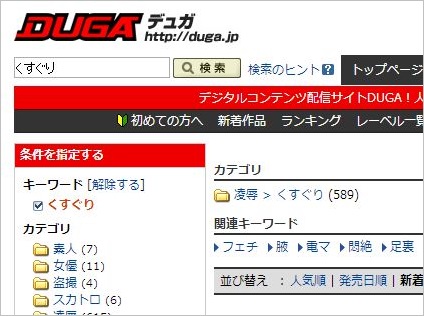 このように、「くすぐり」で検索しただけでも、くすぐりカテゴリで589件の動画がヒットします。